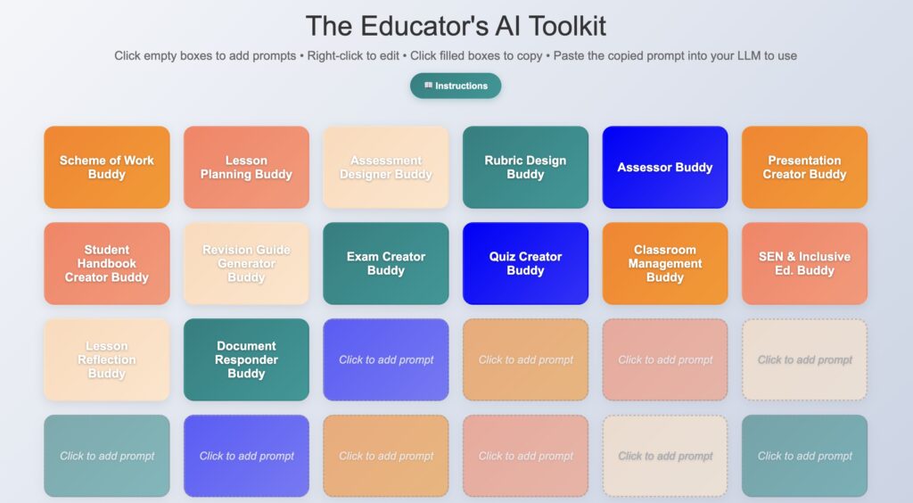 - The “Educator’s AI Toolkit” – sophisticated, collaborative AI prompts guiding reflective workflows